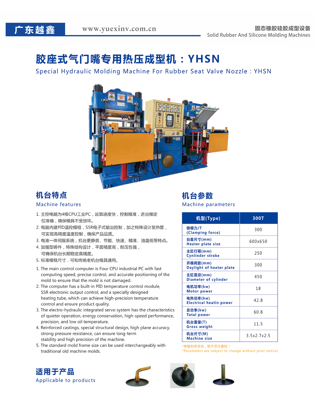Special Hydraulic Molding Machine For Rubber Seat Valve Nozzle:YHSN